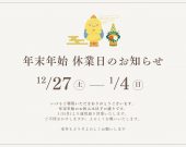 誠に勝手ながら、下記の期間を年末年始休業とさせていただきます。 12月27日(土)~1月4日(日) 1/5(月)より通常通り営業いたします。 ご不便おかけしますが、よろしくお願い...