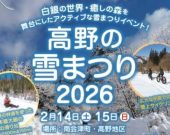 2月14日(土)・15日(日)に 高野の雪まつり2026が開催されます! 冬の里山を舞台にしたアクティブな雪まつりイベントです^^ 林道を使った日本最大級の雪の滑り台やかんじき...
