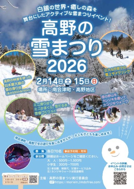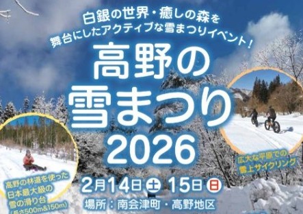 2月14日(土)・15日(日)に 高野の雪まつり2026が開催されます!
