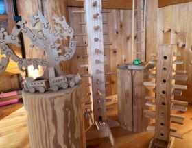 無垢の木のおもちゃと絵本がたくさんあります。