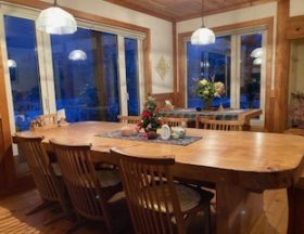 樹齢300年のとちの大テーブルで、ゆっくりとお食事をお楽しみ下さい。